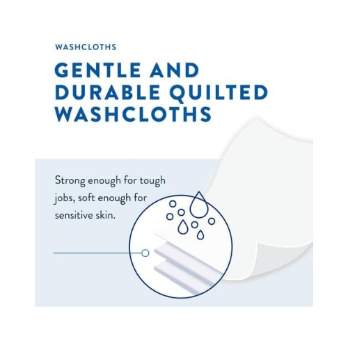 Prevail adult washcloths are strong enough for tough jobs, sized for adults, and super soft for the skin. These washcloths are hypoallergenic and made with Vitamin E and natural botanicals of aloe and chamomile, known for protecting, soothing, and promoting healthy skin. Skin Smart fabric on Prevail washcloths enriches skin with lotion and ingredients that can improve overall skin wellness.